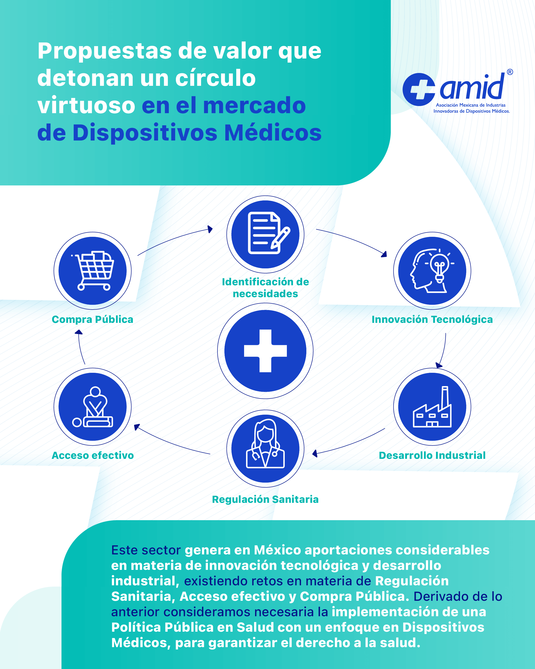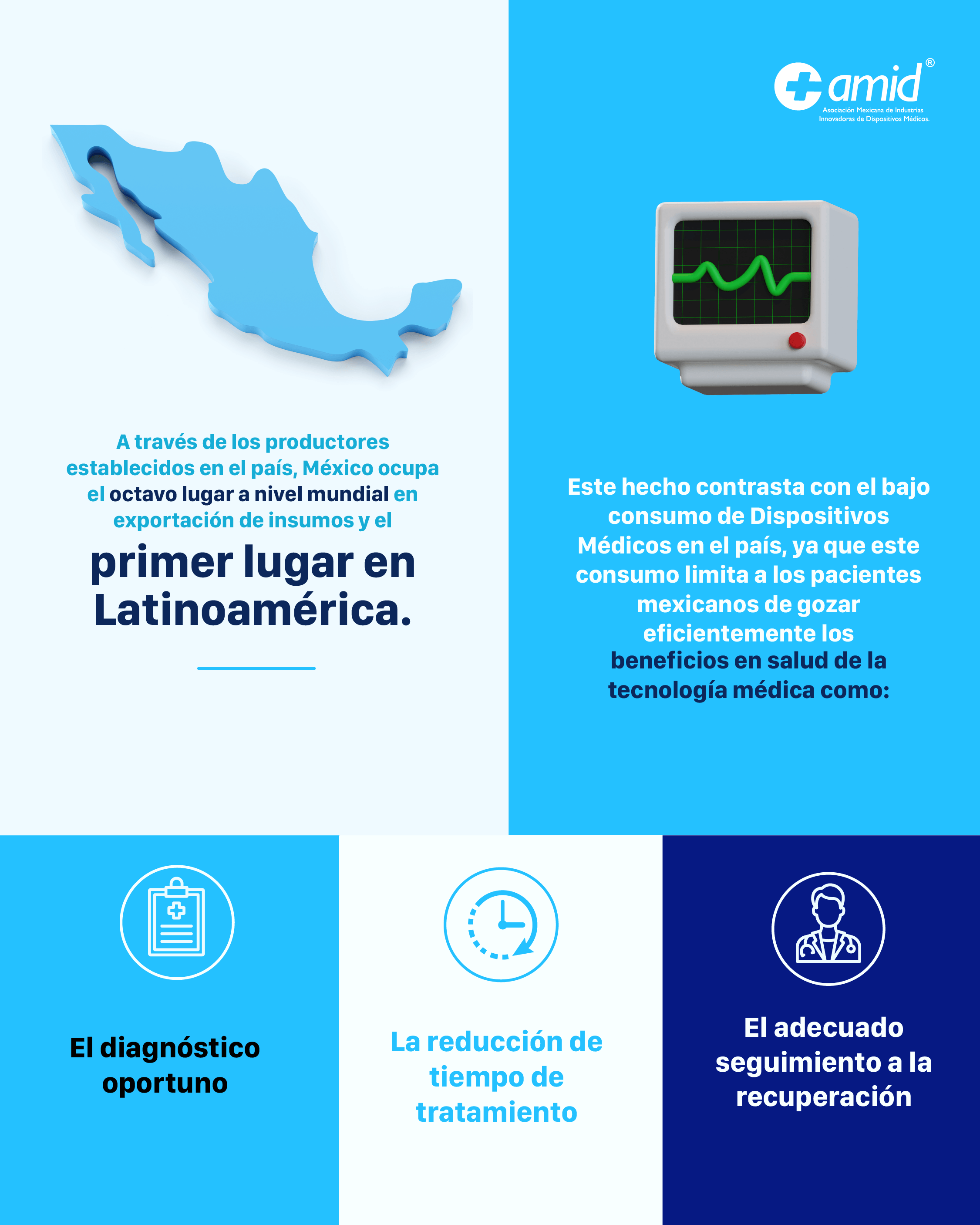 La Asociación Mexicana de Industrias Innovadoras de Dispositivos Médicos (AMID) agrupa a más de 44 líderes globales en innovación de dispositivos médicos y sistemas de diagnóstico, caracterizados por su tecnología eficaz, segura y de calidad.
